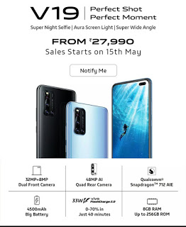 The Vivo V19 price is start from RS. 27,990/- for 8+128GB and RS. 31,990/- for 8+256GB.